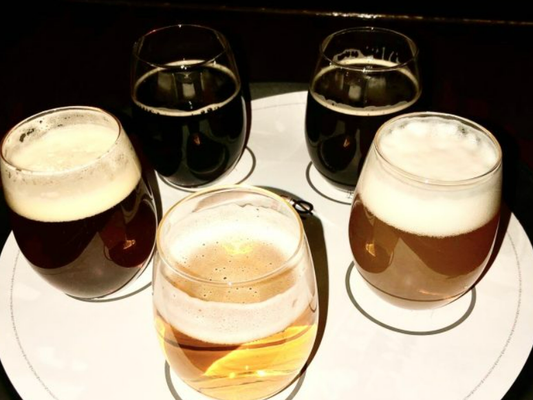 카운터의 아주머니에게 「맥주는 잘 모르지만 다양한 맛을 시험해 보고 싶다!」라고 부탁하면, 그런 소박한 소원을 이룰 수 있는 맛 트레이를 권해줍니다.