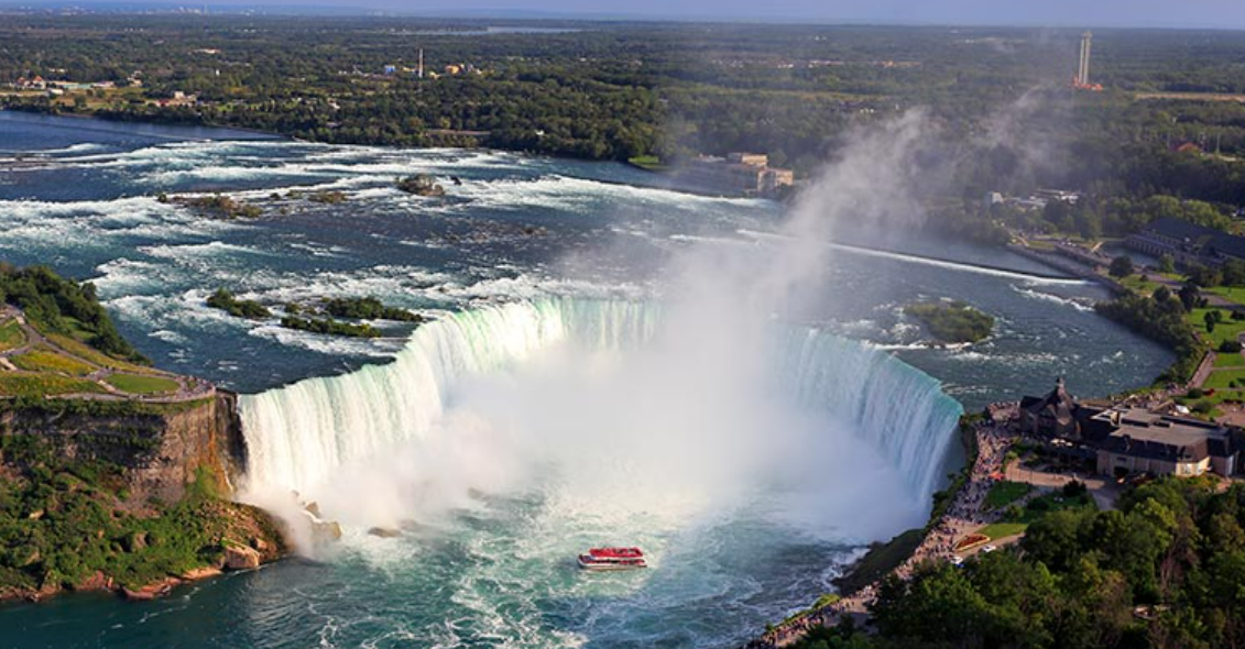 세계 3대 폭포 중 하나이며, 캐나다 폭포, 아메리칸 폭포, 브라이덜 베일 폭포 등 3개 폭포의 총칭입니다. 호스슈 폭포(Horseshoe Falls)라고도 알려진 캐나다 폭포(Canadian Falls)는 보트에서 물보라를 일으키고 위에서 조감도를 내려다보는 등 다양한 위치에서 볼 수 있을 뿐만 아니라 바로 옆에 있는 전망대 "테이블 록(Table Rock)"에서도 볼 수 있습니다. 물보라에 의한 폭포 위의 무지개의 아름다운 풍경이나 밤의 일루미네이션 등 계절과 시간에 따라 표정이 바뀌는 것도 매력입니다.