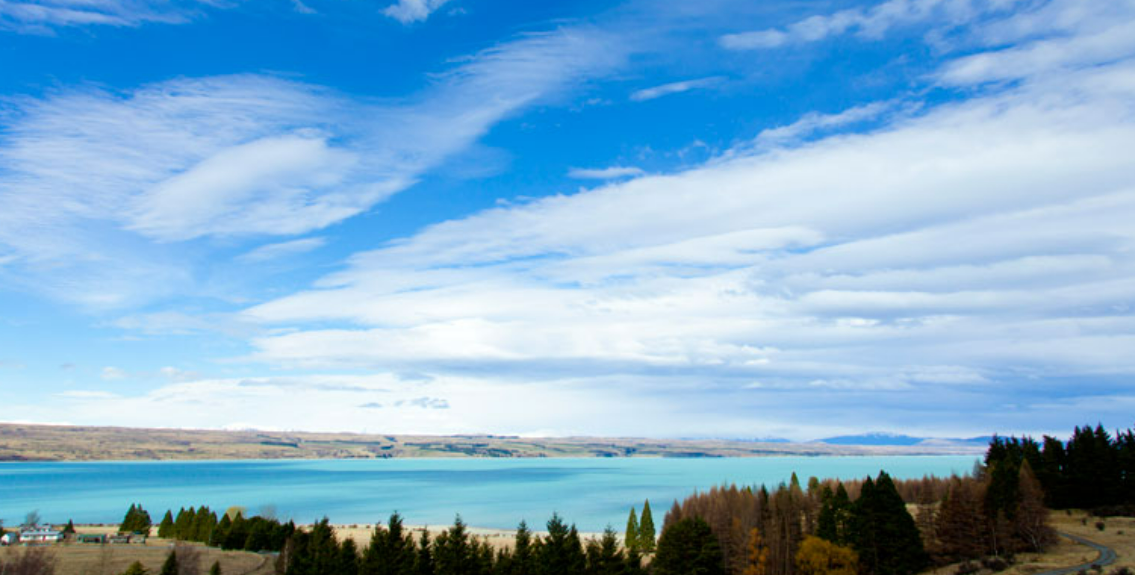 뉴질랜드 남섬의 크라이스트처치와 마운트쿡 사이에 위치한 이곳은 뉴질랜드에서 가장 상징적인 경관 지역 중 하나입니다. 우윳빛 푸른 호수는 빛이 닿는 방식에 따라 색이 바뀌며, 별을 관찰하는 것으로도 유명합니다. 운이 좋으면 오로라를 볼 수 있습니다.