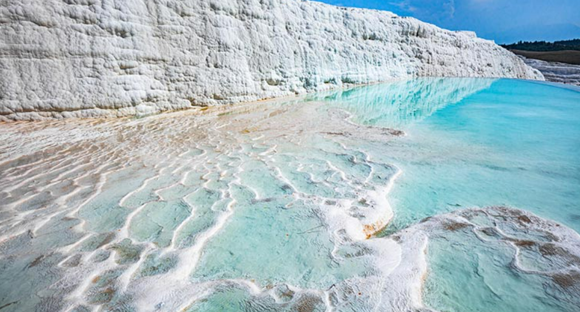 터키어로 "목화 성"을 의미하는 이곳은 터키 남서부 데니즐리에 있는 자연 유산입니다. 온천의 석회 성분이 퇴적된 석회질은 새하얀 눈이 쌓인 것 같은 환상적인 풍경을 보여줍니다. 하얀 라임 선반에 흐르는 푸른 물은 실제로 하늘의 파란색을 반사하는 온천입니다. 경치를 즐기는 것 외에도 온천에서 목욕을 할 수 있는 곳도 있으니 족욕을 즐겨 보는 것은 어떨까요?