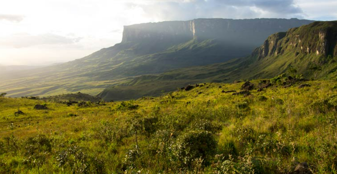 베네수엘라, 가이아나, 브라질에 걸쳐 있는 해발 약 2,800m의 테이블 마운틴. 산 정상은 평평하고 운해를 뚫는 광경은 압권입니다. 이 장면은 군함처럼 보이며 때로는 "육상 전함"이라고 불립니다.