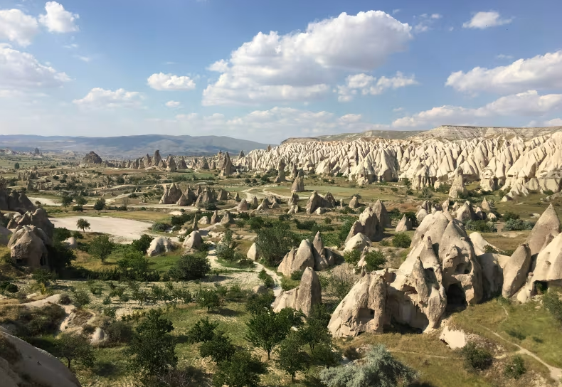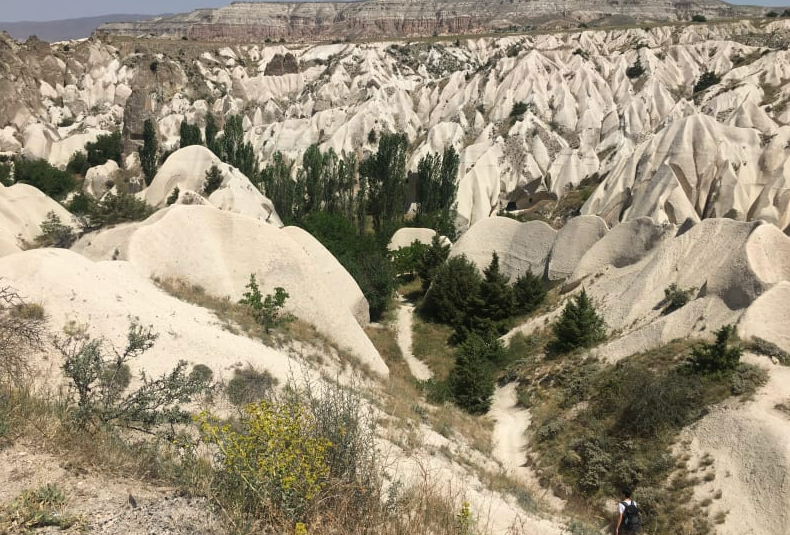 카파도키아는 건조한 지역이지만 계곡 바닥은 초목과 습기로 뒤덮여 있습니다. 새하얗고 거친 바위 지대 사이에서 초록을 발견하면 대지의 생명력과 맑은 공기를 느낄 수 있어 상쾌한 기분이 듭니다.